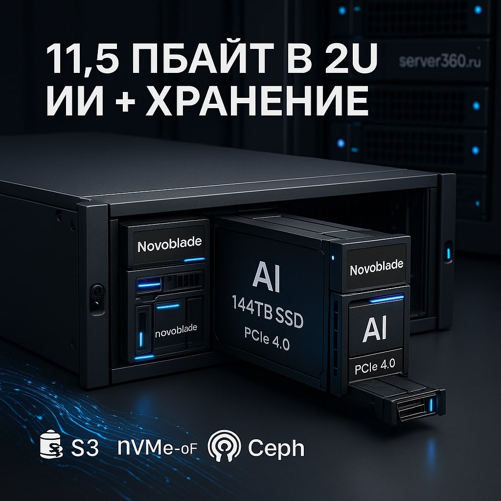 Стартап Novodisq анонсировал революционное решение для хранения и обработки больших данных — гиперконвергентный блейд-сервер формата 2U с плотностью хранения до 11,5 петабайт. Новинка сочетает экстремальную ёмкость, энергоэффективность и вычислительные возможности ускорителей ИИ, предлагая компаниям альтернативу традиционным системам NAS, SAN и облачным платформам. Решение ориентировано на задачи, где критичны производительность, предсказуемость затрат и физическая компактность: от научных исследований до периферийных ИИ-вычислений.