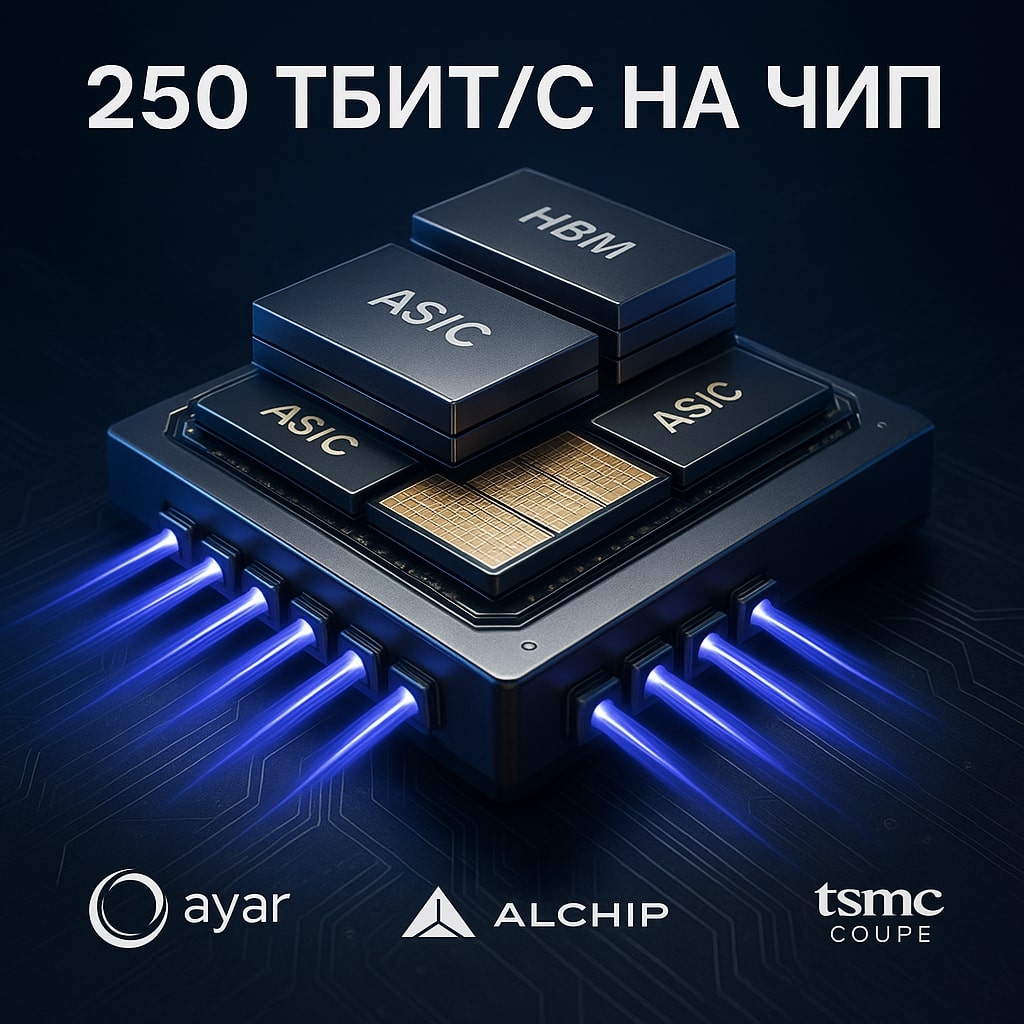 В начале сентября 2024 года мировая полупроводниковая индустрия получила мощный импульс к развитию: компании Ayar Labs (США), Alchip Technologies (Тайвань) и TSMC (Тайвань) объявили о совместной разработке референс-дизайна для создания ИИ-ускорителей нового поколения. Этот проект объединяет передовые технологии кремниевой фотоники, чиплетной архитектуры и 3D-упаковки, позволяя достичь пропускной способности до 250 Тбит/с на одну сборку (SiP). Такой прорыв решает ключевую проблему современных ИИ-инфраструктур — узкие места в передаче данных между вычислительными блоками и памятью.