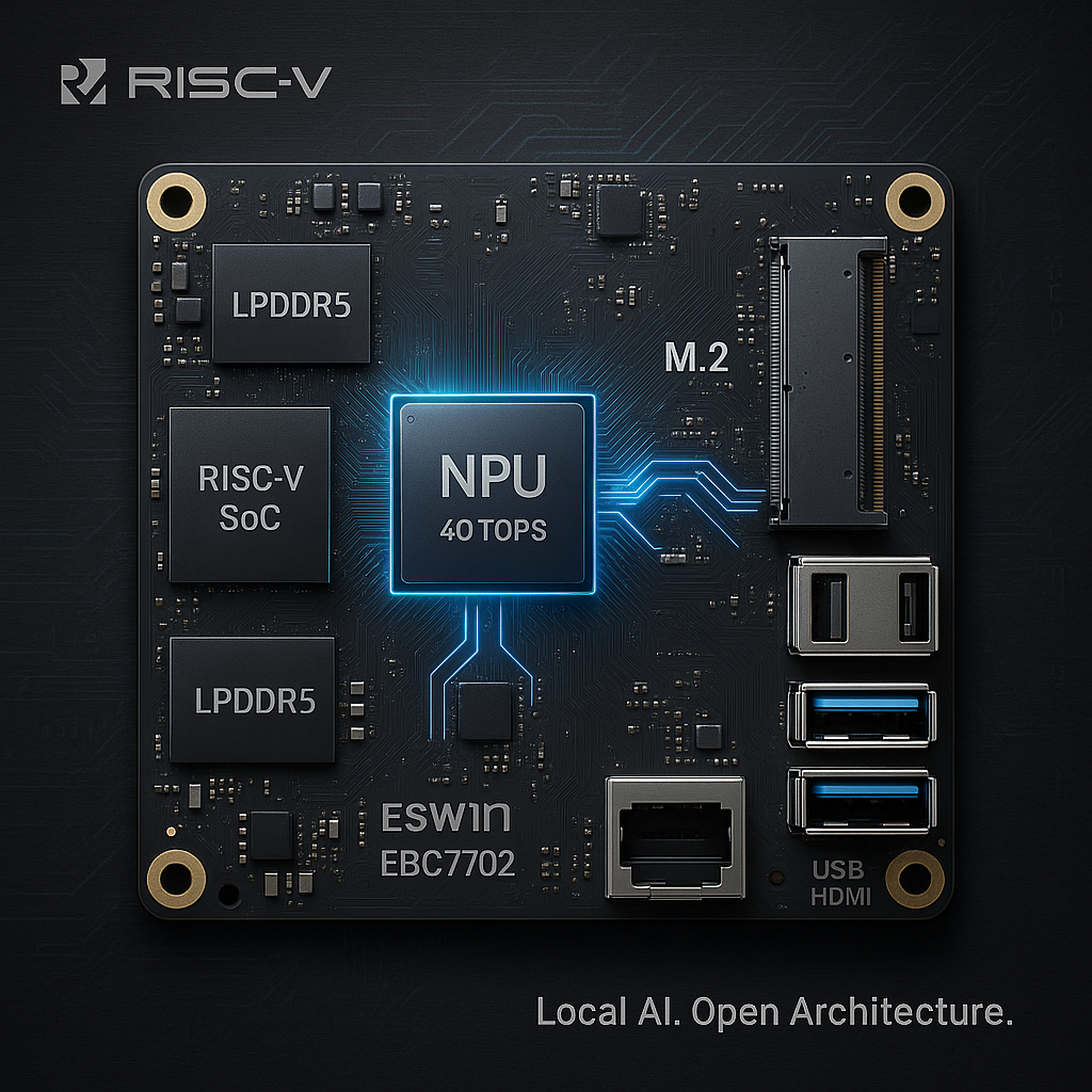 Компания Eswin Computing, в партнёрстве с Canonical, представила новую разработку — плату EBC7702 на базе архитектуры RISC-V. Это решение ориентировано на разработчиков, которым необходима высокая производительность для локальных ИИ-задач, обработки видео и работы с данными без зависимости от облачных сервисов. Плата выполнена в компактном форм-факторе Mini-DTX и уже сейчас вызывает значительный интерес в профессиональных кругах.
