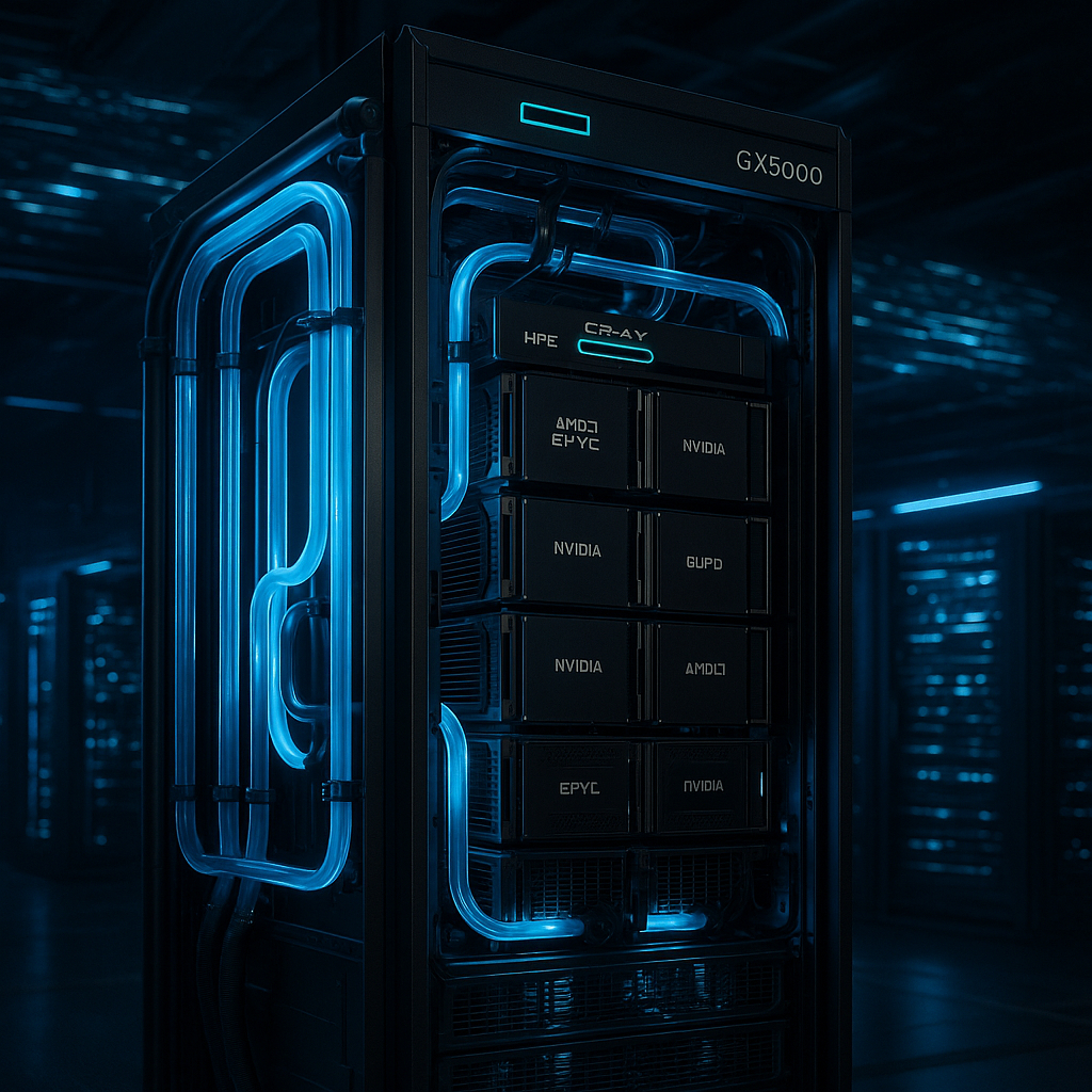 Архитектура платформы HPE Cray Supercomputing GX5000 была спроектирована с нуля для поддержки задач искусственного интеллекта (ИИ), машинного обучения (ML), моделирования сложных физических процессов и обработки экзафлопсных объёмов данных. В её основе — три новых blade-сервера: