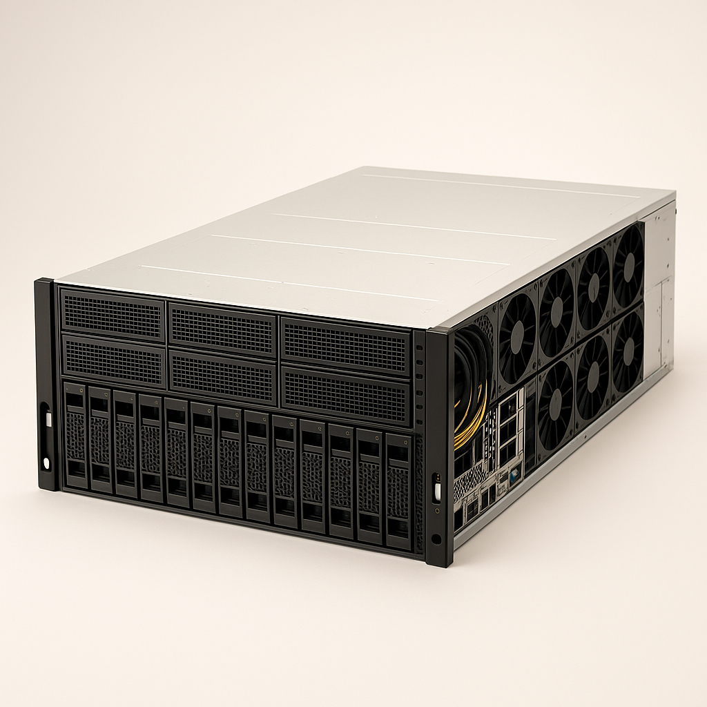 Каждый из этих ускорителей представляет собой мощнейший вычислительный блок, а в совокупности они превращают сервер в полноценный ИИ-кластер в одном корпусе. Такая конфигурация идеально подходит для задач, требующих параллельной обработки: от обучения гигантских моделей до работы с мультимодальными данными.