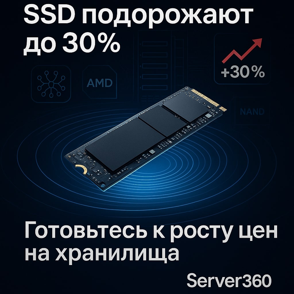- Закупайте SSD крупными партиями через проверенных поставщиков, таких как Server360, чтобы получить скидки и защититься от роста цен.